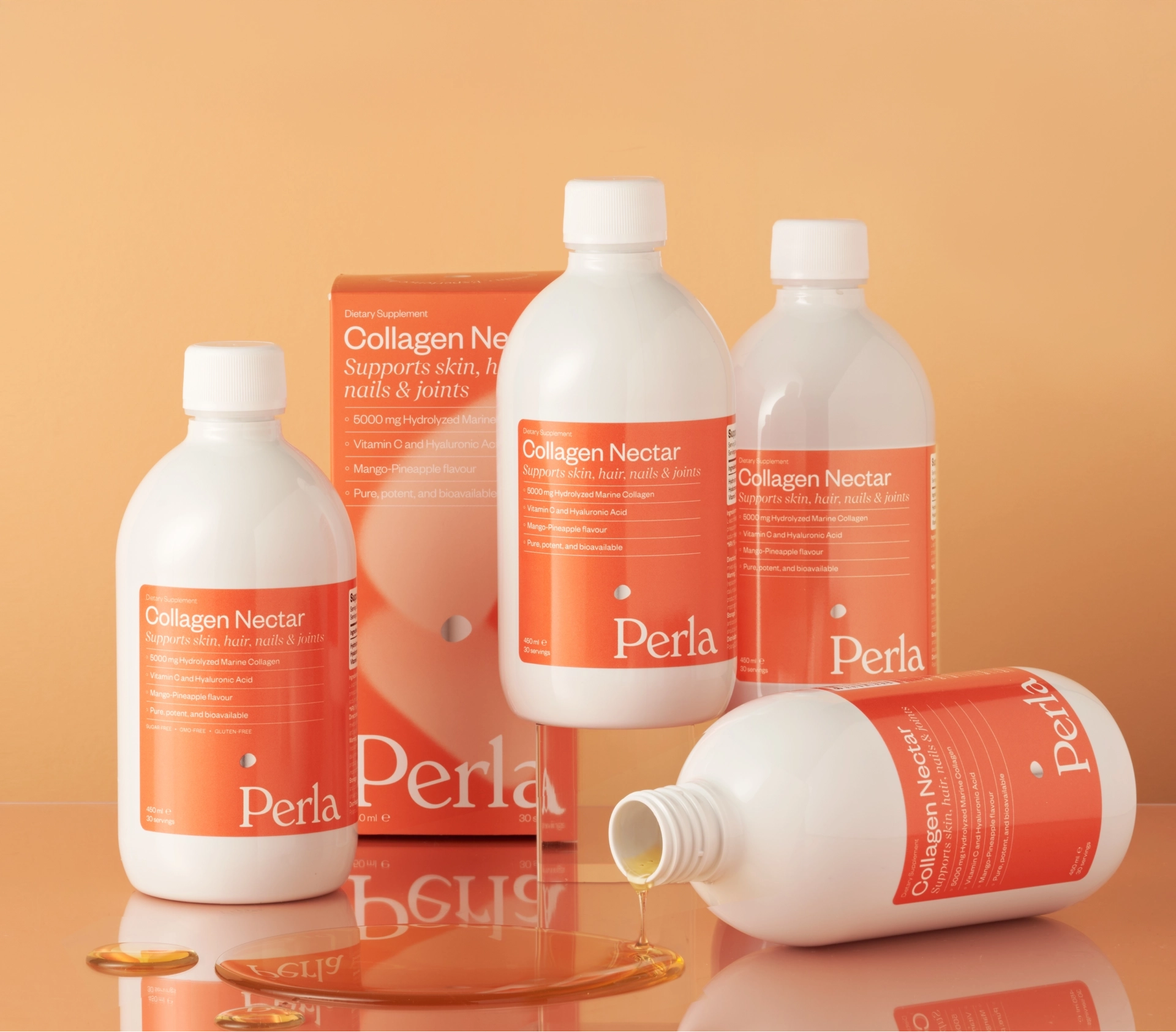 Drinkable collagen with a mango-pineapple flavor for your glowing skin, strong nails, and healthy hair. Formulated with the triple power of marine collagen, hyaluronic acid, and vitamin C. And it tastes amazing!