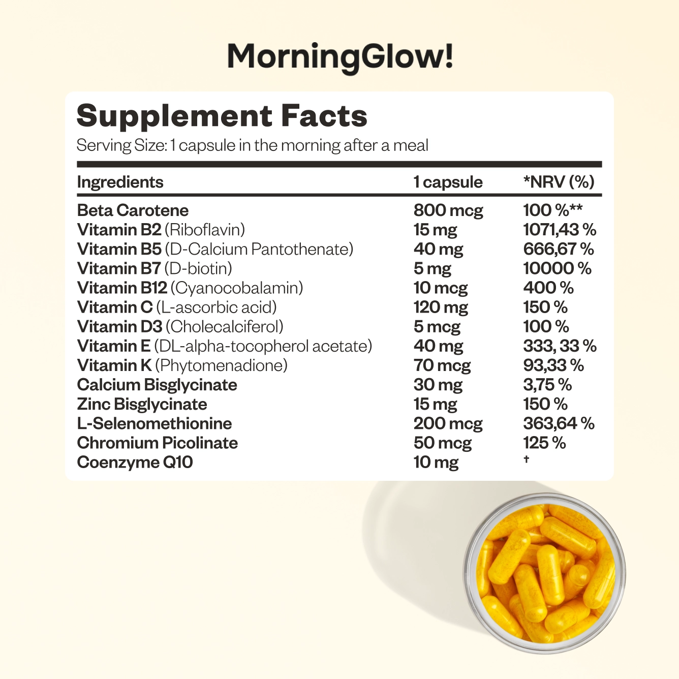 Rano: 1 żółta kapsułka ze słoiczka „MorningGlow!”