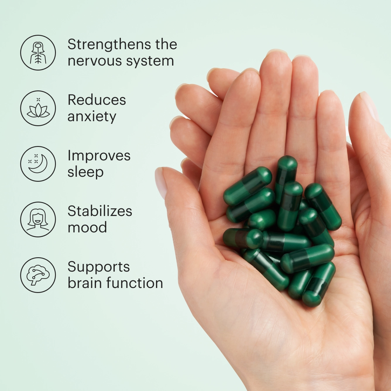 The optimal dosage for calming is two capsules per day. It is recommended to use in the evening after a meal with a glass of water.